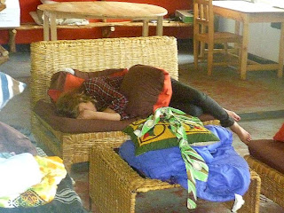 24 Hours In The DRC. . .Climbing Nyiragongo, an active volcano in the Congo, was something that came up on my radar screen a few weeks ago, after hearing about it from a few friends here in Rwanda. The timing to slip away from GHI after the gigantic Thanksgiving event for a couple of days seemed good and the logistics fell into place, acquiring a visa and finding a reliable tour company. Despite some trepidation and much discussion about the implications of the upcoming elections in the Congo and the recent activity of another volcano, Mount Nyamulagira, three of us Metta, Johan and myself, decided to venture forth. Camping on the shores of Lake Kivu at Gisenyi was a wonderful start to the adventure. A lovely dawn chorus and swim in the lake was a real treat. Watching the local fisherman paddle to shore in their threesome canoes after their night of work was a delightful image. Listening to their lilting sing-songy chanting/singing wafting through the sultry air, combined with a nearby church full of robust vocalists provided a great audio sensation too.We were picked up promptly at 0730 by a man named Innocent, who assisted with the visa process on the Rwandan side (Gisenyi is right on the border). He then dropped us at the border where we were met by Roger, who assisted on the Congo side. It felt a bit like being part of the Underground Railroad with the handoffs from person to person. The stark contrast between countries was immediately apparent and alarming. Gisenyi appears like the land of milk and honey with manicured parks and gardens vs. Goma’s depressed and battered streets, full of barbed wire and UN trucks and soldiers. Our route to the volcano climb took us through parts of Goma which had been swept away in the 2002 eruption of Nyiragongo. Tiny wooden clapboard houses on volcanic debris lined the roadways on both sides. Political posters, flags and banners were ubiquitous. There are 5 parliament positions open for Goma and 285 candidates for the November 28th election, 500 positions with 20,000 candidates for the entire country!After about 30 minutes of car time we were dropped off at the park entrance. The bullet riddled sign is surely a photo op for many climbers (us included). After a briefing we set off with two armed guard/guides (one in the front, one in the rear), as well as a porter which I hired. I figured with my aging body and my decreased lung capacity that it was money well spent.The entire climb took about 5 hours, including rests…The guide kept getting radio requests for updates from the base wondering about the “mama’s” status. They were obviously concerned about my abilities. His consistent replies, “she is strong”, were reassuring. We walked steadily through forest which opened up into lava fields (tricky footing) and then towards the summit of 3,400 meters (a gain of 1,400 meters). Part of the time it bucketed rain with nearby thunder which was a bit nerve wracking. Soaked to the skin, I required a change into dry gear at the last stop before reaching the top which was a STEEP climb. Arriving at the rim was tantalizing as the crater and its lava were shrouded in mist, but the sounds were enormous; similar to gigantic Oahu breakers coming into shore and Yosemite scale waterfalls. When the skies cleared to reveal the lava it was utterly mind boggling. The lava is about 400 meters below, in a crater with a diameter of 3km. The deep orange of the lava was a colour I had never really seen. The rivers of lava looked like the patterns of the reticulations on a giraffe on one side and the other side like crashing waves of molten lava interspersed with mini eruptions throughout the whole field. It was totally mesmerizing to watch the lava for the few hours we were there. Remembering to turn once in a while to see the other views of the Rwandan mountains, Lake Kivu, as well as the other volcano, Mount Nyamulagira, erupting smoke in the distance, helped keep the blood circulating...it was cold. The warmth from the lava wasn’t enough! Snuggling into the warm sleeping bag was a treat, though it took awhile to warm up… I especially missed Robert knowing how much he would have relished seeing the lava as well as for the warmth factor! I could see the orange glow and the waning moon as I drifted off to sleep.We were up at 0500 for another session of lava viewing and then the 3 hour descent. Arriving back in Gisenyi and taking a moto to the bus for the trip back to Kigali makes one realise that the more “usual” risks in life are a reality too. Climbing Nyiragongo was a calculated risk/decision I will never regret…a life “bucket list” item. Helen Boats returning from a night of fishing
